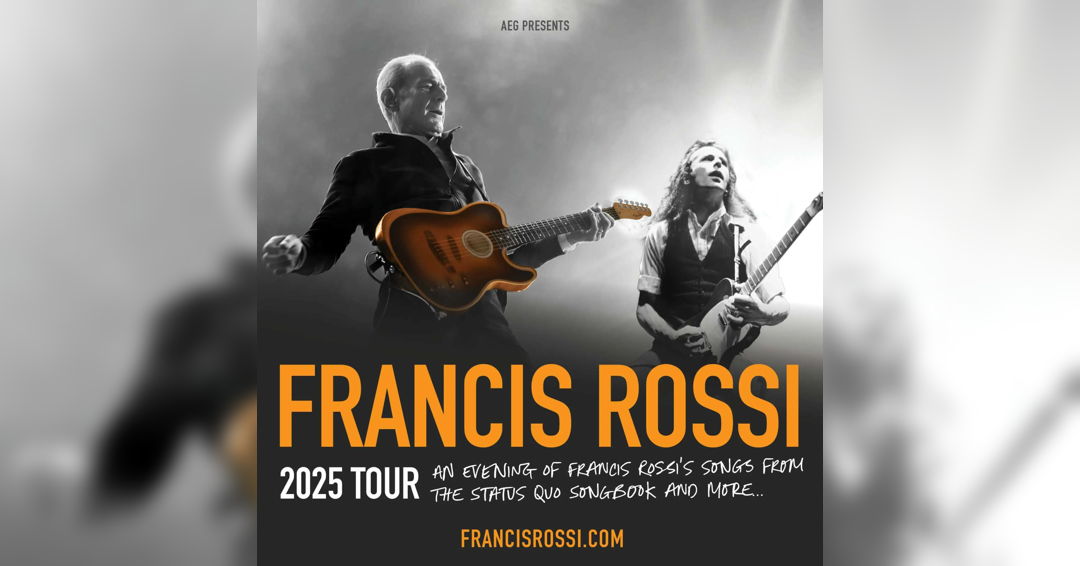 Francis Rossi is embarking on a 34-date tour of the UK from April to June 2025, with a brand new show billed as “An Evening of Francis Rossi’s Songs from the Status Quo Songbook and More…” These shows will feature songs that he has not ever played before in this format and offer first hand backstage tales about appearing over 100 times on Top Of The Pops, why they went on first at Live Aid, life with Rick Parfitt, the hits, fellow stars, and misadventures across the world, all cut through with Francis’ wit and humour.
